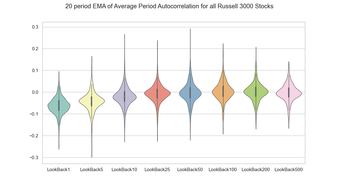 Here we have the average autocorrelation (correlation of todays return with a return N lookback days in the past) for all stocks in the SP500 and Russell 3000. If you look closely you can see the trend I speak of. Short term returns tend to exhibit little or even negative correlation while longer lookbacks show autocorrelation that turns positive. This is a fancy way of saying, asset trends are more likely to persist on longer timeframes. As such, we have decisive and conclusive evidence that trend following works. Don’t @ me.