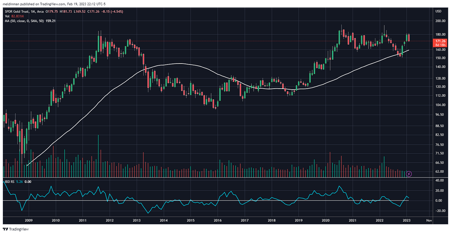 I have created a Trading View template and watchlist to make it even easier to follow, so that you have no excuses as to why you aren’t trading this. Just click on the links to add the templates or use your own charting platform to follow along. Note that I am using Monthly Bars and have a 50 Month Simple Moving Average and my IBD Momentum Indicator on the bottom.